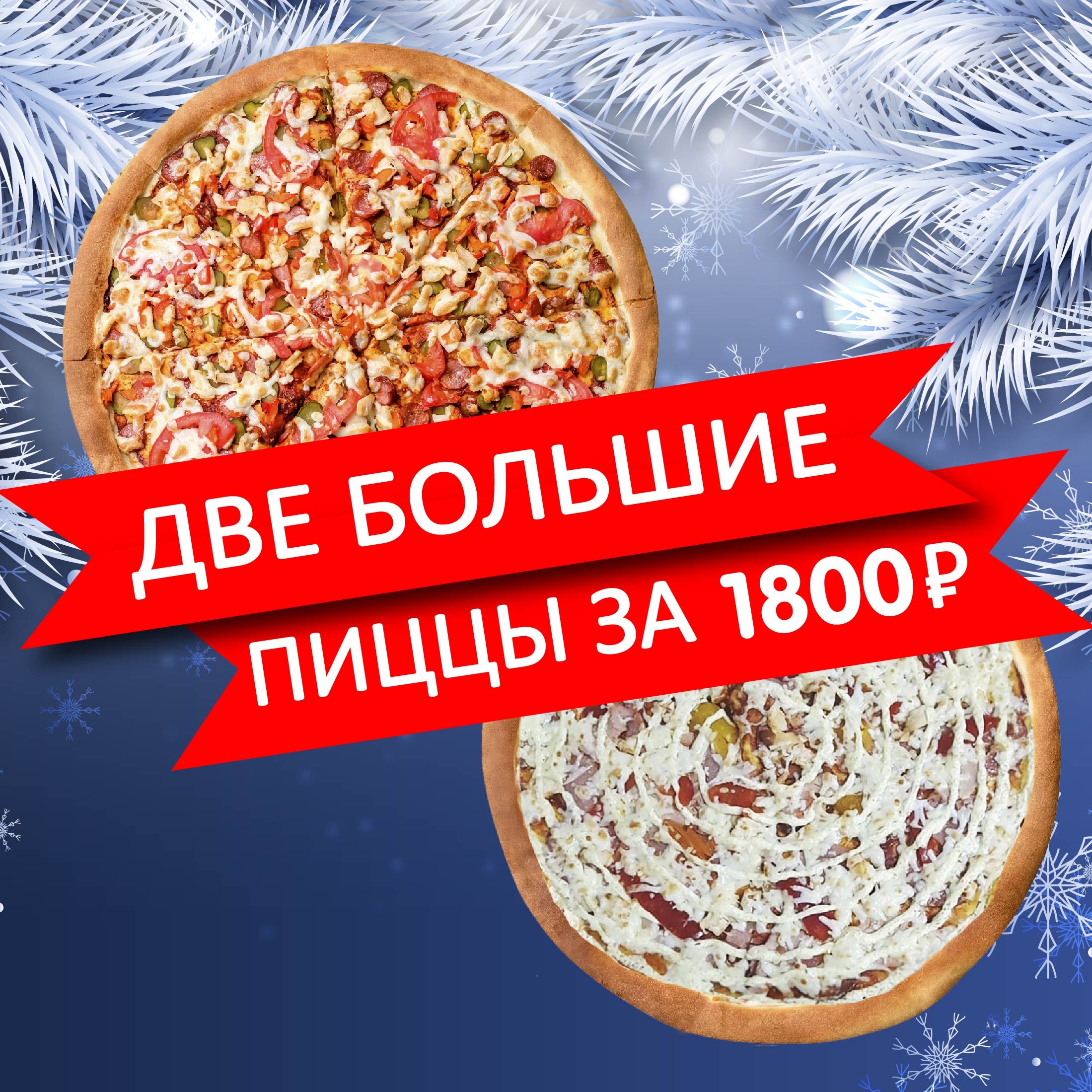 Две пиццы: Европейская 40 см + Охотничья 40 см по специальной цене - 1800 р.