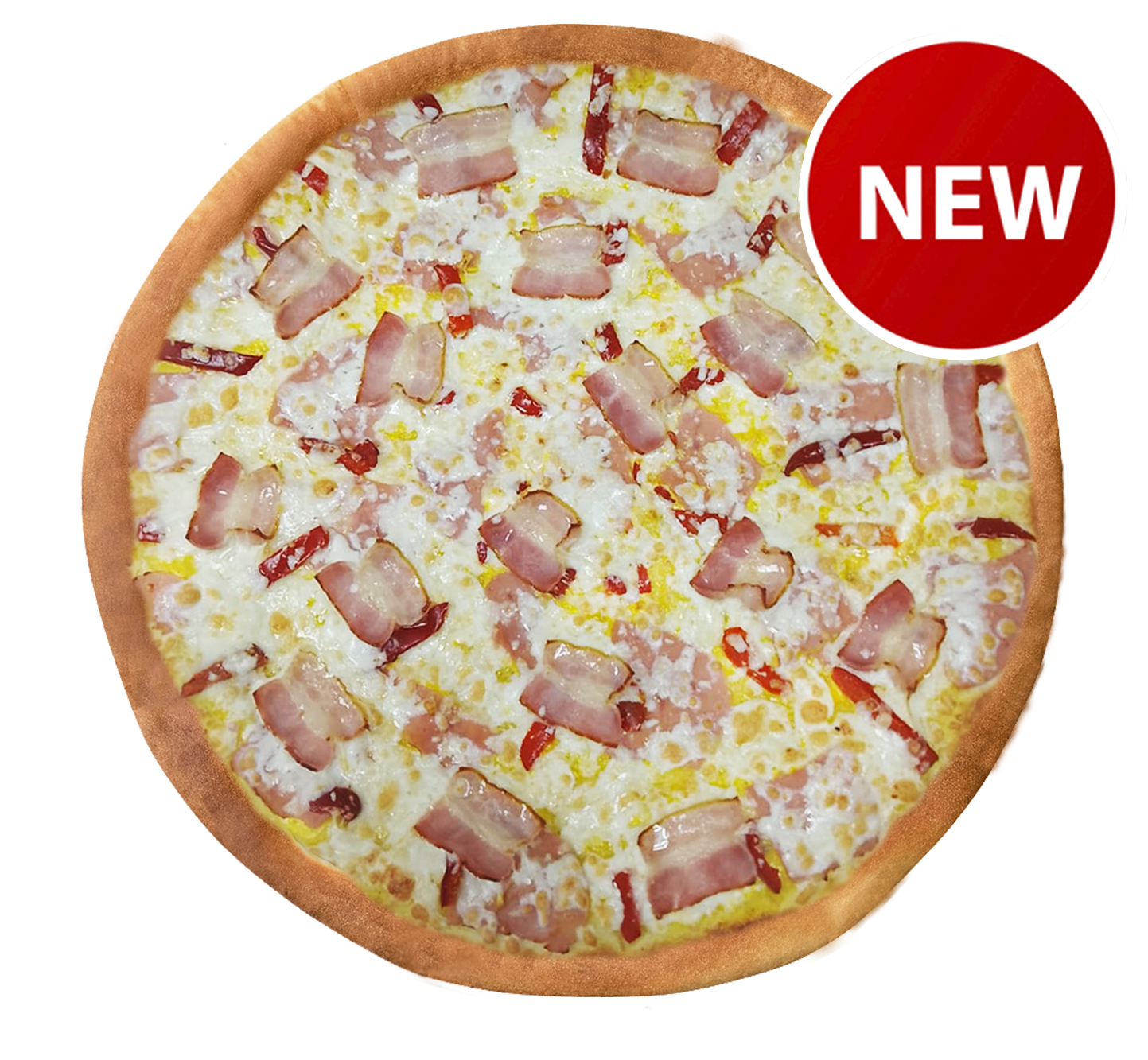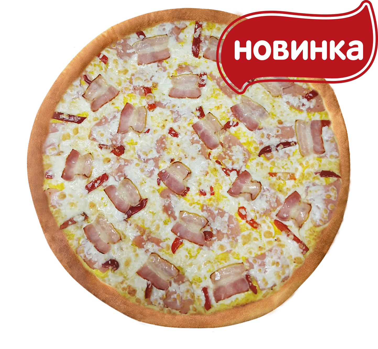 Ветчина, бекон сырокопчёный, болгарский перец, сырный соус, моцарелла